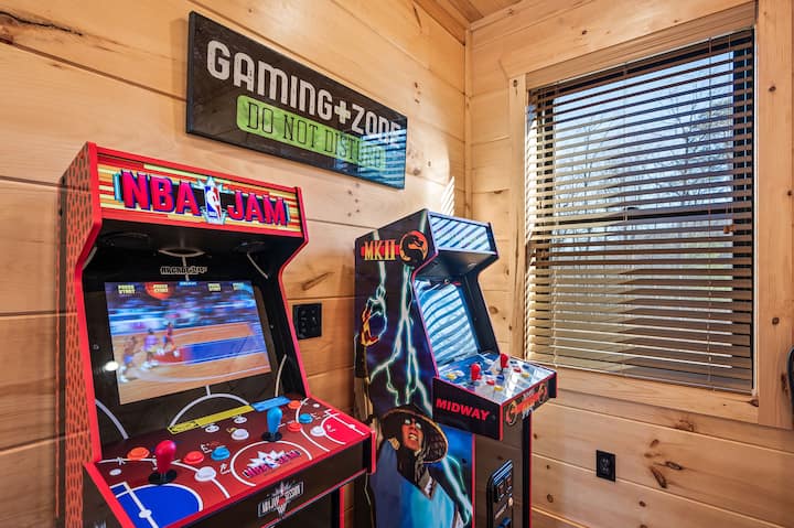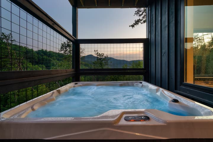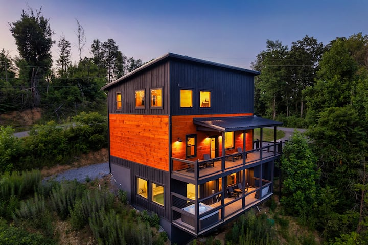 לא רק נופים מדהימים, יש לנו הכל! בקתה חדשה בגובה 3,000 רגל רבוע בצד ההר עם בריכה חימום פרטית, ג'קוזי חיצוני וחדר משחקים עם 4 משחקי ארקייד, פוסבול ושולחן ביליארד. ממוקם באופן אידיאלי הרחק מהכאוס של העיר, אבל מספיק קרוב כדי שזו תהיה נסיעה קצרה.