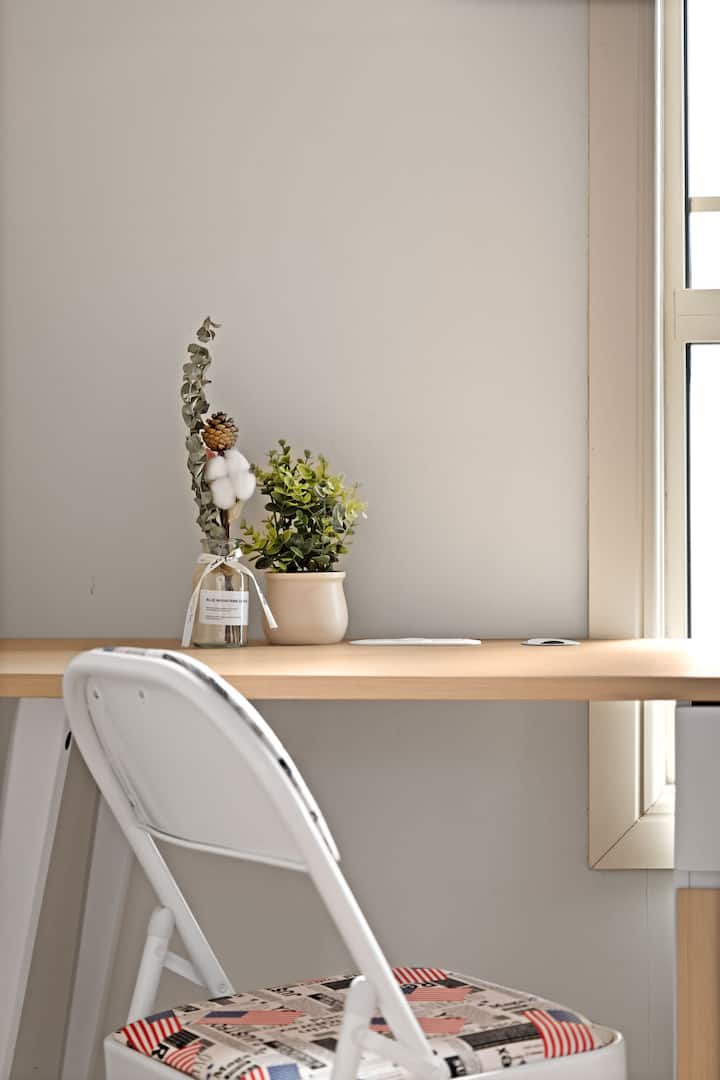 יהיה לכם חדר פרטי נוח משלכם שכל אחד מהם יספק שולחן עבודה, ארון ומיטה אחת/ קינג יחיד/ זוגית.