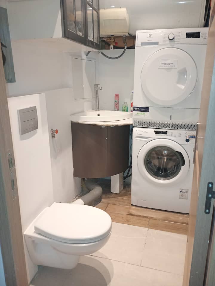 ל-3 חדרי שינה יש שירותים נוספים. יש חדר שירותים באזור המשותף.