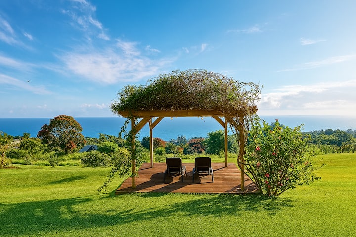 ברוכים הבאים ל - Hamakua Sunrise Estate, דירת נופש יוקרתית בת קיימא בחוף המאקואה עוצר הנשימה של האי הגדול של הוואי. פועל 100% על אנרגיה סולארית ומי גשמים. האחוזה הפרטית הזו, השוכנת על 5 דונם של גנים טרופיים, מציעה נוף פנורמי לים ב -180מעלות, מרפסת לצפייה בלווייתנים ונופי זריחה וזריחת ירח ללא תחרות מעל האוקיינוס השקט. לא משנה אם אתם מחפשים מקום מפלט מבודד או מקום מפלט מלא הרפתקאות, אחוזת היוקרה הזו בהוואי מושלמת למשפחות, לנופש קבוצתי, לחתונות קטנות ולאירועים מיוחדים (נדרשת הרשאה מיוחדת).