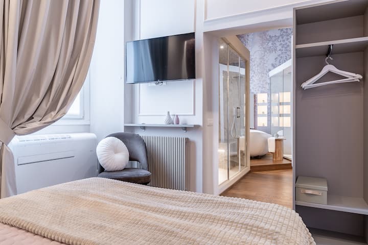 בלב המרכז ההיסטורי של גרוטאפרטה, כפר מקסים בקסטלי רומני, דקות ספורות מרומא, הסוויטה המדהימה הזו מחכה לכם. נופש רומנטי לשניים עם ספא פרטי. תנו לאדים של המרחץ הטורקי לחבק אתכם, להתרענן במקלחת החושית, ולחלוק רגע בלתי נשכח באמבטיה המרווחת לשניים. חופשה אינטימית ומפוארת שבה הזמן מאט והרוגע הוא במרכז הבמה.