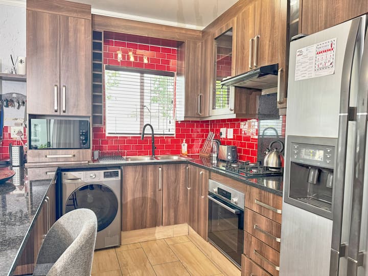 ברוכים הבאים ל-Duplex Delight, המפלט המודרני, המסוגנן והשקט שלכם, במרחק 10 עד 12 דקות בלבד מנמל התעופה הבינלאומי OR Tambo. דופלקס זה, המרוהט להפליא, ממוקם באופן מושלם בשכונה המאובטחת והמשפחתית של גרינסטון היל, ומיועד לאורחים שמעריכים נוחות, פרטיות וחוויית בית אמיתית מחוץ לבית.