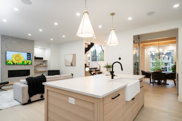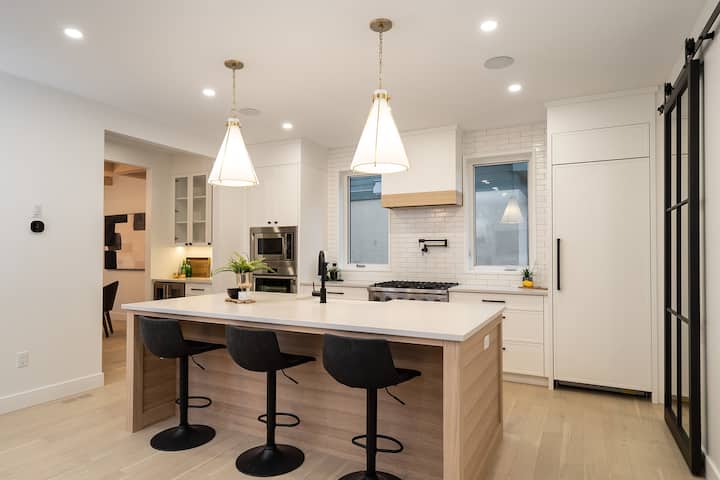 הבית מואר באור שמש יפהפה, הודות למספר חלונות סביב המדרגות וברחבי אזורי המגורים, שיוצרים אווירה מוארת ומאווררת. להישאר מחוברים עם Wi-Fi מהיר בכל הבית וליהנות מקפה שנעשה עם מכונת נספרסו או מכבש צרפתי. כדי שיהיה לכם נוח יותר, יש שתי מכונות כביסה ומייבש (למעלה ובקומה הראשית).