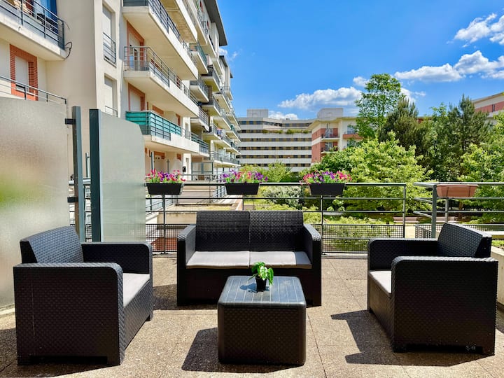 דירת 3 חדרים מרווחת עם מרפסת, חניה ו-RER D במרחק דקה