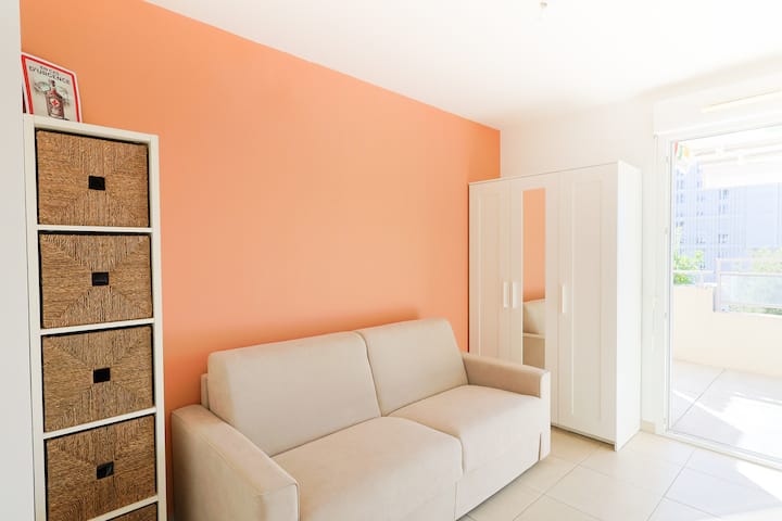 דירת T2 גדולה עם מרפסת ומיזוג אוויר חניה חינם