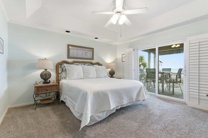 חדר שינה ראשי: מיטת קינג סייז עם חדר רחצה צמוד וגישה לצד החוף