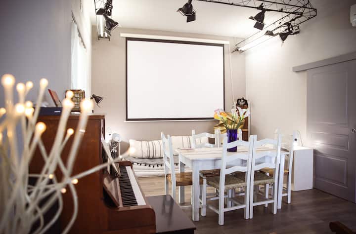 כאן תמצאו פסנתר, גיטרה ומסך קולנוע, מושלם לערבי בידור.