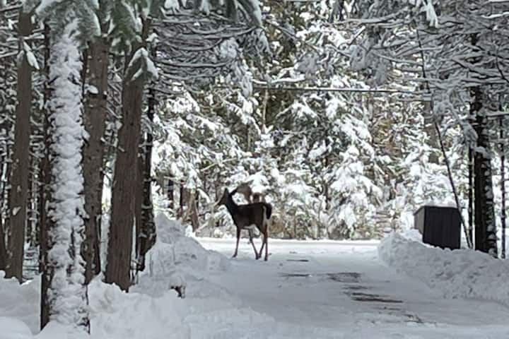 נאמן לשמו, Chateau dans le Bois הוא באמת טירה ביער. כשתיכנסו לשביל הגישה המעגלי, תדעו שהגעתם לפינה המרהיבה הזו בגן עדן, מוכנים להפוך למלכותיים לחגים שלכם. הלובי הקדמי מקבל את פניכם עם חלונות מהרצפה עד התקרה, ספסל נוח להסרת נעליים משמאל, ומכונת כביסה/מייבש חדשים בארון הכביסה מימין. חדר איפור בקומה הראשית מוסיף לנוחות כשאתם נכנסים יותר פנימה.
