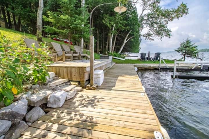 גרם המדרגות בעבודת יד עומד במרכז הבמה, ומוביל אתכם לקומה העליונה. מעבר למדרגות תגלו מטבח מרווח, אוורירי ומשופץ להפליא. המטבח, שעוצב והופק על ידי סקוט מקגיליבריי בשנת 2022 עבור סדרת הטלוויזיה "Scott's Vacation House Rules", כולל שירותים מודרניים לאורח ושולחן עגול גדול עם נופים מרהיבים לאגם בלסם. מאז, בעלי הנכס הוסיפו נגיעות אישיות, מה שהופך אותו לחם ומזמין, מושלם לחופשה על שפת האגם.