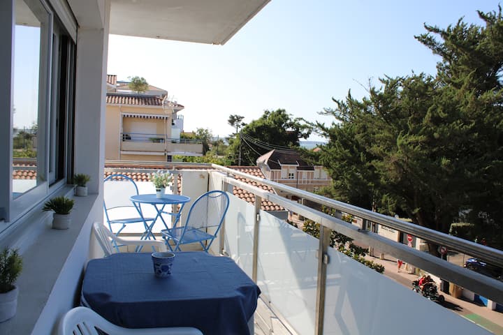 דירת 4 אנשים עם נוף לים, 50 מ' מחוף הים, חניה, 3 אופניים.