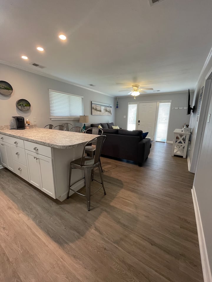 לשקוע במזרנים עם כריות, ספות נוחות ולשטוף את היום בחדרי רחצה משופצים. רצפות LVP חדשות ואריחים לאורך כל הדרך מאפשרים ניקוי קל - אל תדאגו לגבי החול בין אצבעות הרגליים שלכם כאן. צאו מהדלת אל בריכת הנופש היפהפייה, או הירגעו, צלו על הגריל והירגעו במרפסת הפרטית שלכם.