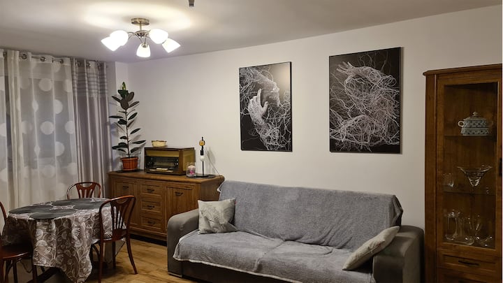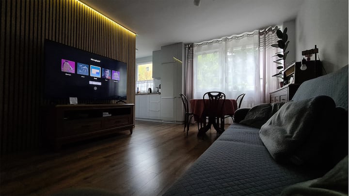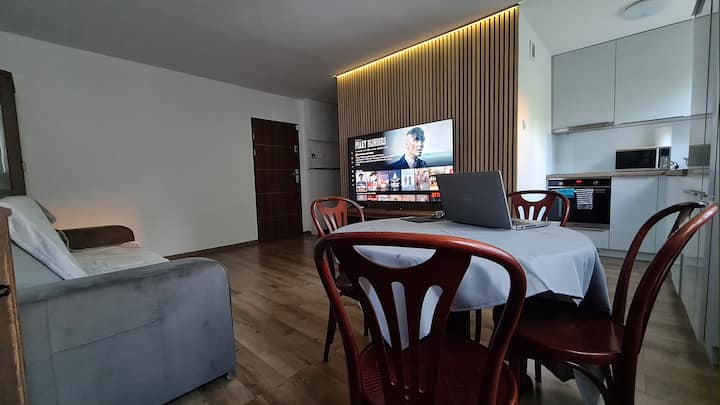 בדירה יש חדר שינה אחד (מיטה זוגית 200x140 עם מצעים אחד), מטבחון עם ספה נפתחת (מצעים נוספים באתר 50 זלוטי) חדר רחצה אחד, מגבות, פינת אוכל ומטבח מאובזר. יש גם טלוויזיה עם מסך שטוח, Wi - Fi ו - MAX, NETFLIX, Prime Video.