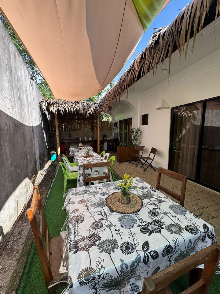 במהלך השהייה תהיה לכם גישה למטבחים המשותפים שלנו - נהדר לבישול ארוחה! כרגע יש לנו שניים זמינים: אחד ליד חדר 1 (קהל), מוכן לשימושך, ומטבח משותף נוסף ליד חדר 4 (רוזאס). אתם מוזמנים להשתמש בפינת האוכל המשותפת לארוחות או לשעות השבתה. תהיה לכם גם פטיו משלכם כדי ליהנות מחלל חיצוני - שימו לב שהמחיצה עדיין בתהליך, אבל היא כולה שלכם כדי להירגע!