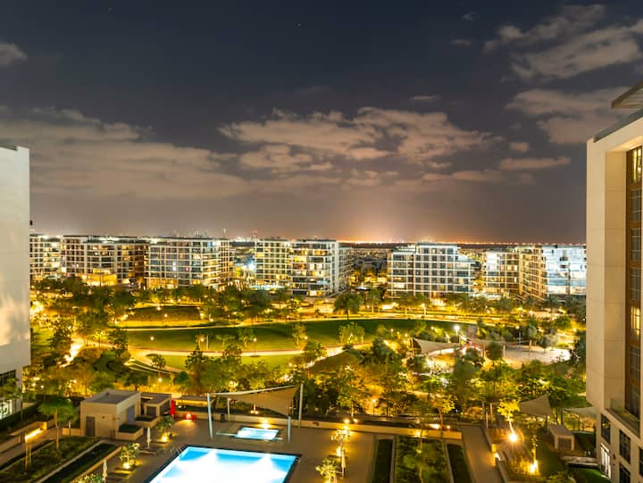 3 חדרי שינה מודרניים | נוף מלא לפארק ובריכה בגבעות דובאי