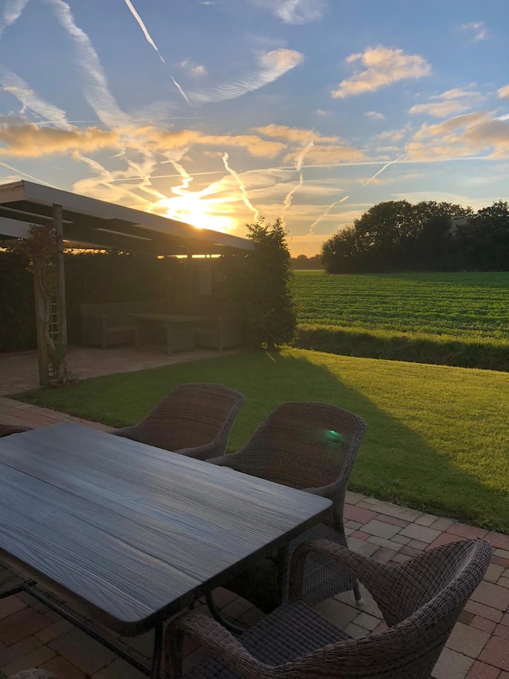 הבית הנפלא והמרוהט להפליא הוא בגודל של כ-120 מ"ר, עם 2 קומות ו-4 חדרי שינה, ומתאים ל-6 אנשים לכל היותר. היא מעוצבת באהבה, וגם מאובזרת בצורה מודרנית ואיכותית מאוד. בנכס יש גינה יפה ובלתי נראית עם מרפסת ואזור טרקלין מקורה נוסף כדי להישאר בנוחות בשמש הערב. הנוף הרחב מעל השדות השטוחים הוא בלתי ייאמן ומאפשר לכם לשכוח את הזמן בזריחה.