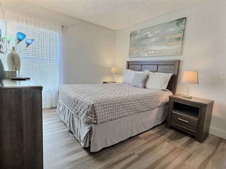 - חדר שינה עם מיטת קווין סייז: מיטת קווין סייז, טלוויזיה, חדר רחצה משותף