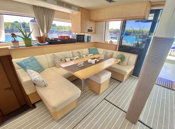 ברוכים הבאים על סיפון הקטמרן Lagoon 52 משנת 2014, שעוגנת לצמיתות במלון והמרינה פרי בקי ווסט. זוהי שהייה בסירה על שפת המים המשלבת את החוויה של מגורים על המים עם גישה מלאה למרינה בסגנון אתר נופש ולמלון - אפשרות אידיאלית לאורחים המחפשים מקום לינה ייחודי בקי ווסט מעבר לדירה או חדר סטנדרטיים במלון.