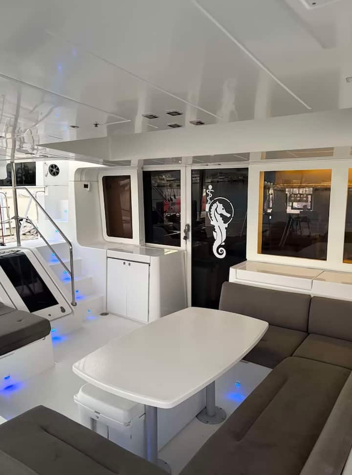 ברוכים הבאים על סיפון ה-S/V SeaLab, קטמרן לגונה באורך 16 מטר, שעוגן בפרי מרינה בקי ווסט, פלורידה. יאכטה מרווחת זו משנת 2014 יכולה להכיל עד 12 אורחים בשש תאים פרטיים, כל אחד עם חדר רחצה צמוד משלו. מושלם למשפחות, חברים או צוותי צלילה המחפשים מקום אירוח ייחודי על שפת המים. ליהנות מחוויית מלון צף בלב האיים - אין צורך להפליג. להירגע, להיטען וליצור זיכרונות בלתי נשכחים על סיפון היאכטה הפרטית שלכם - בלי לעזוב את הרציף.