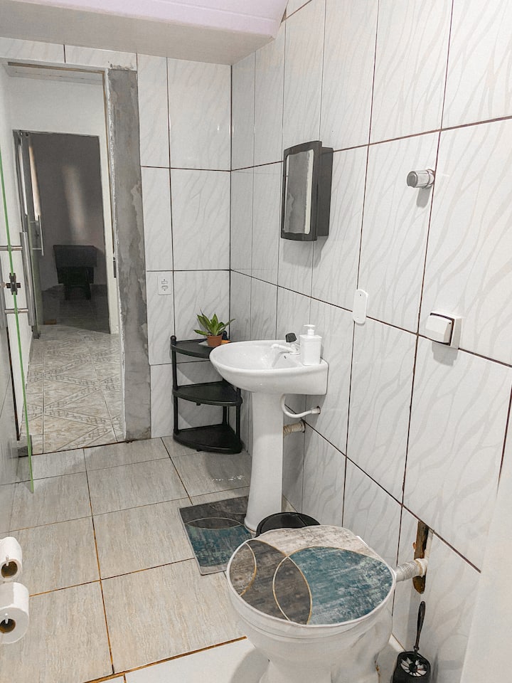 This place has a half bathroom that’s connected to your room.