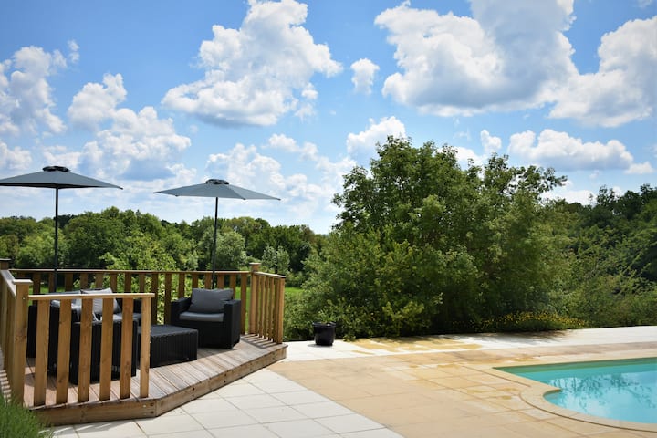 בית יפה עם בריכה בשטח פרטי.