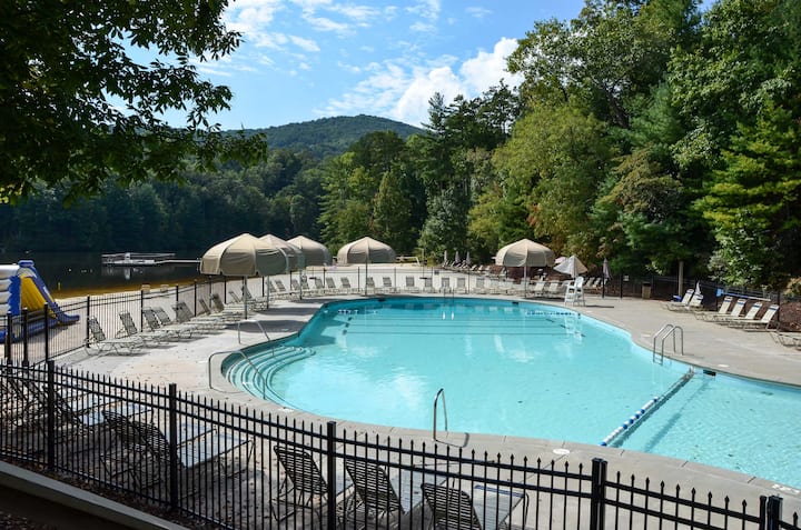 נוף לאגם ולמסלול גולף: בית Big Canoe עם מרפסת!