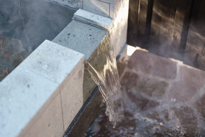 האמבטיה הפתוחה, המוקפת בשדה אורז ואדמות חקלאיות, היא חוויה מיוחדת.