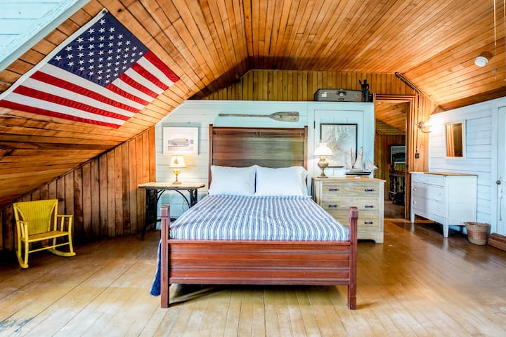 הקוטג' הזה נגיש רק בסירה, והוא צעד שליו אחורה בזמן, מוקף בטבע ובמים. לבלות את ימיכם במשחק מלפפון חמוץ, קיאקים, שחייה או פשוט להירגע על המרפסת כשהספינות עוברות דרך תעלת נהר סנט לורנס.