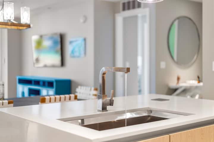 ליהנות ממטבח גורמה מאובזר במלואו המצויד במכשירי Miele מהשורה הראשונה, כיריים אינדוקציה, מקרר מובנה ומדיח כלים, מקרר יין ומכונת קפה נינג'ה התואמת הן לתרמילים והן לקפה טחון. מערכת סינון מים מלאה ליחידה מבטיחה מים נקיים ומרעננים במהלך השהייה.