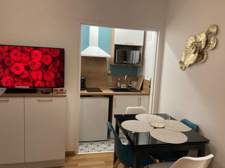 דירת 2 חדרים בגודל 28 מ"ר, משופצת במלואה עם עיצוב נעים ושיקי, ממוקמת באופן אידיאלי באזור המגורים של Éventail, רק 80 מטר מחוף קאבור.