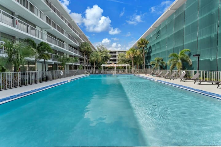חדר קינג יוקרתי במרחק 7 דקות מ-Disney עם בריכה וחניה בחינם