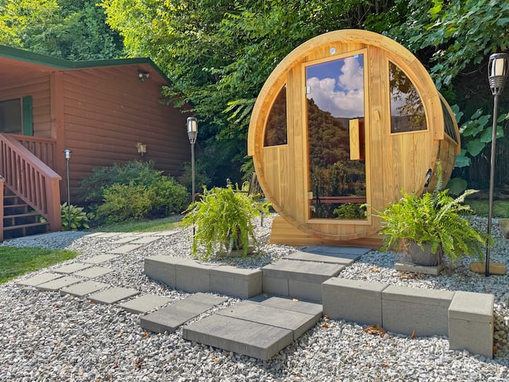 בחלל פרטי בצד השני של הנכס תמצאו חצר מקסימה עם סאונה חבית לארבעה אנשים ומקומות ישיבה. אחרי טיול ארוך, תוכלו לבלות קצת זמן בלהזיע בסאונה החבית עם נוף להרים תוך כדי ניקוי רעלים.