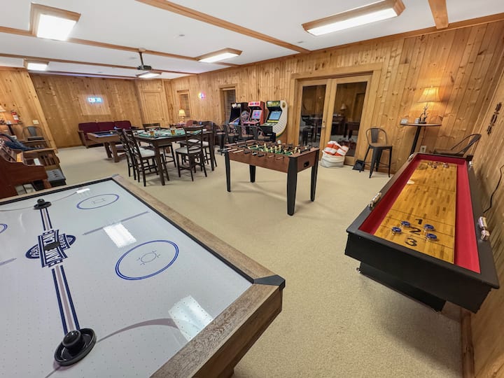 כשמדובר בבידור בתוך הבית, הבית מתגאה בחדר משחקים במפלס התחתון, הכולל הוקי אוויר, אולמות, טלוויזיה Roku, כדורגל שולחן, ביליארד, פינג פונג, שאפלבורד, שולחן פוקר ומגוון משחקי קלפים. תוכלו גם למצוא סט של כדור סולם, סט משחקים של קורנהול וג'נגה ענק.