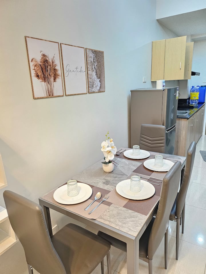 ביחידה יש מיטת קווין סייז נעימה וספה נפתחת גדולה בסלון, מושלמת לישיבה או לשינה. בישלו את הארוחות האהובות עליכם במטבח המצויד במלואו, ואספו מצרכים במרחק הליכה קצר של 3 דקות ב-SM Sucat Hypermarket.