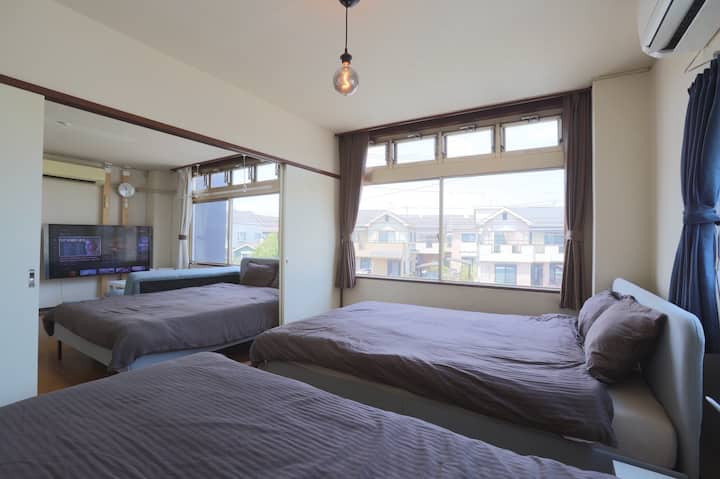 חדש! 2LDK/3 מיטות זוגיות/טלוויזיה גדולה/WiFi/מטבח מאובזר/13 דקות מתחנת טובו שינדה