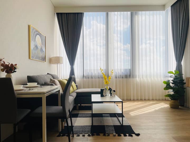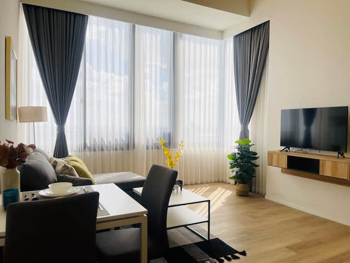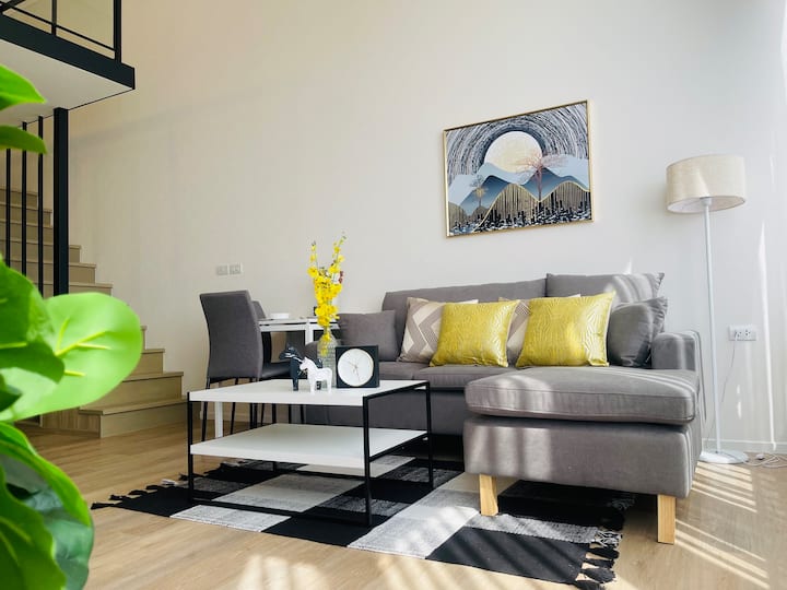 <M2>חדש! סגנון יפני! דירת דופלקס @ מיטה גדולה + ספה נפתחת ליד תחנת BTS Onnut / מתאימה ל-3 אנשים / נוף עירוני יפהפה