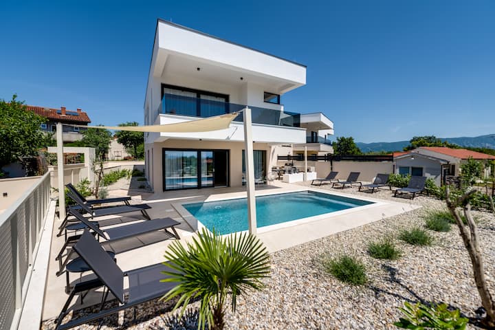 וילה מירקול - וילה מודרנית חדשה עם בריכה, חוף