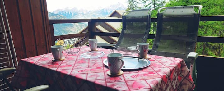 ליהנות מהשמש הדרומית המתונה במרפסת הפרטית שלנו, תוך כדי צפייה בנופים המדהימים של אזור הסקי. זה המקום המושלם ליהנות מהשוקו החם שלכם או פשוט להירגע ולצפות בשלג יורד.