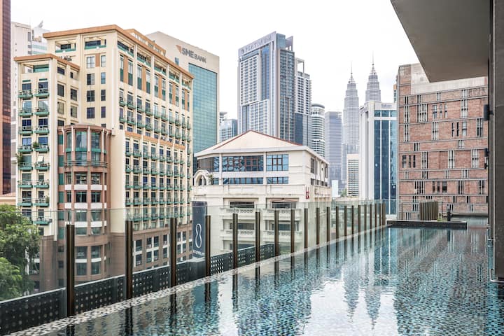 בריכה סמוכה למגדלי התאומים KLCC מיטה זוגית 1.8 מ' לאירוח 4 אנשים -2