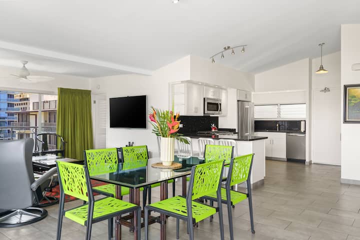 פנטהאוז יוקרתי בחוף וואיקיקי, כמה צעדים מחוף הים!
