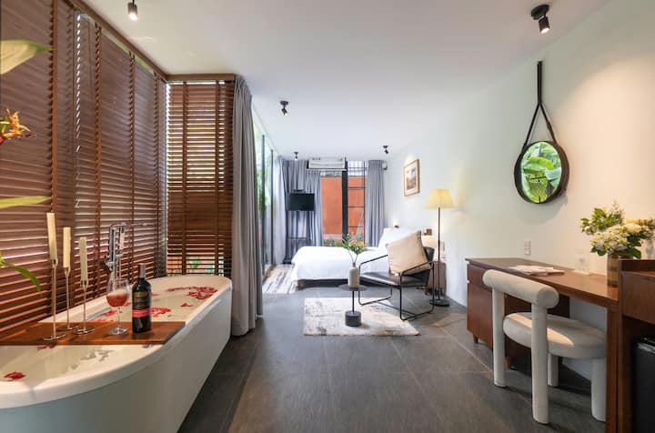 חדר היער, החבוי בסמטה שלווה בלב מחוז 2, מציע מפלט שקט שמרגיש כמו בקתה נסתרת ביער. מוקף בצמחייה ובאור טבעי רך הזורם דרך קירות זכוכית, המפלט הנעים הזה מרגיש רחוק מהעיר - ובכל זאת הוא נמצא במרחק צעדים ספורים מקו המטרו הקרוב וקניון וינקום טאו דיאן. בין אם אתם כאן לעסקים או לפנאי, המיקום הזה מקל על סיור ברובע 1 ובאזורים מרגשים אחרים בסייגון.