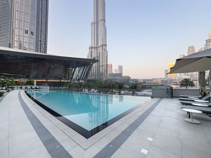 נוף ✔ לבורג' ח'ליפה ולמזרקות: תיהנו מקו הרקיעות המדהים של דובאי, הבורג' ח'ליפה המפורסם והמזרקות שלו מהמרפסת הנפלאה או מבריכת השחייה האינסופית שלנו.
