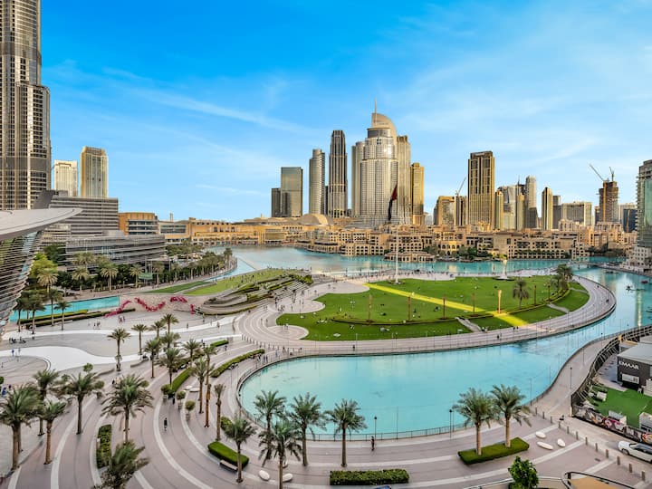 ✔ נופים מרהיבים: נוף פתוח של מזרקות דובאי ובורג' ח'ליפה