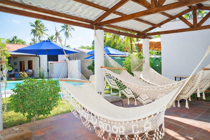 נופש על החוף עם 3 חדרי שינה / בריכה פרטית / מזגן / הליכה לחוף