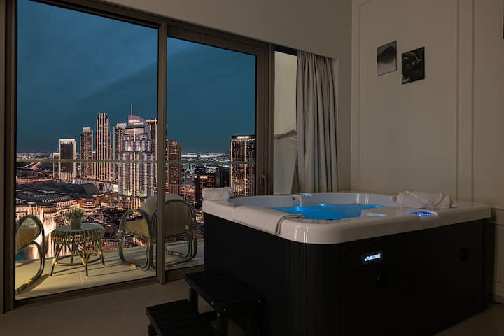יוקרה 2 חדרי שינה•נוף לבורג'•ג'קוזי פרטי•הליכה לקניון דובאי