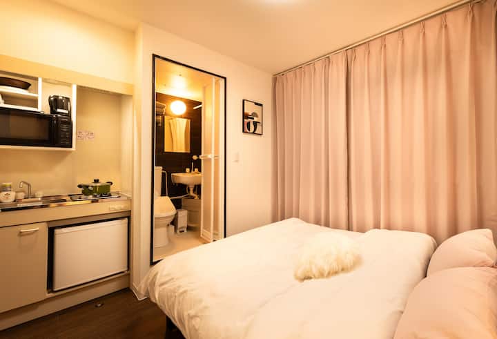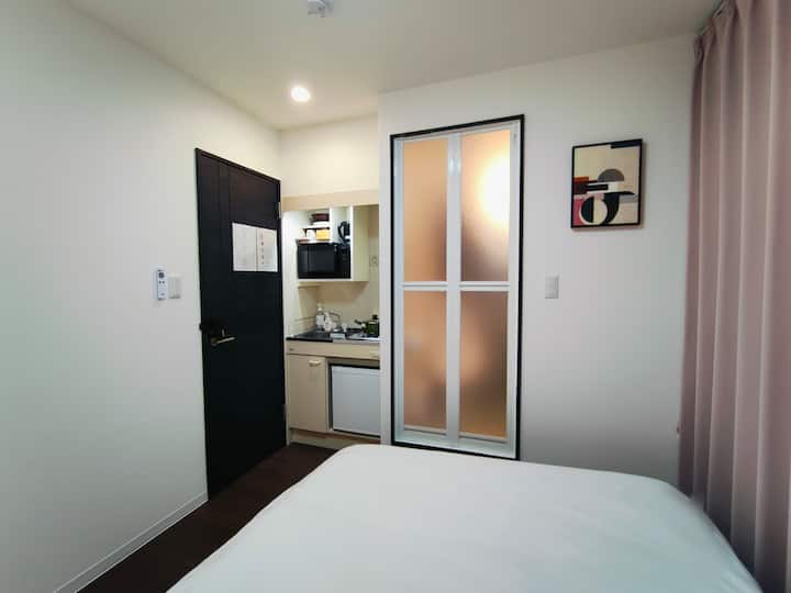 סוויטה פשוטה בסגנון יפני לשני אנשים, בגודל 10 מ"ר, בקומה השלישית, צריך לעלות במדרגות (נא לא להזמין עם יותר מזוודות)