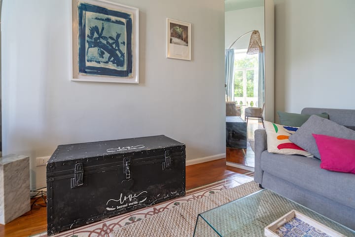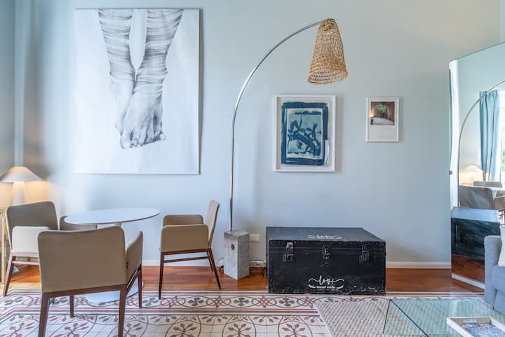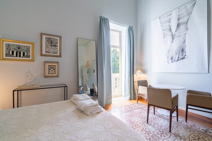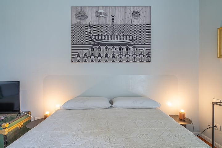 סוויטת אמנות גדולה עם חדר שינה, ספה ומטבח