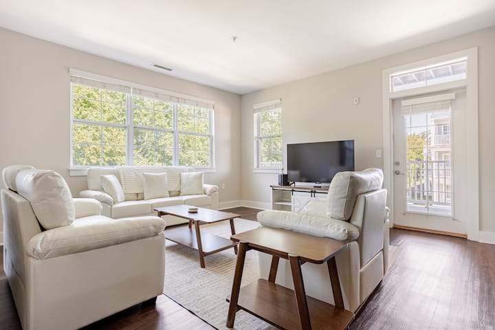 דירת 3 חדרי שינה עם בריכת כושר וגישה לנהר