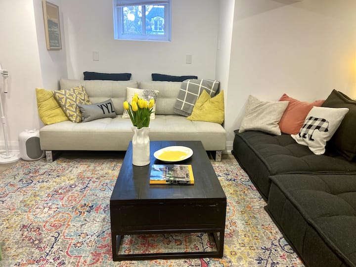 סוויטת מרתף מלאה מוארת ועליזה, הליכה לרכבת התחתית
