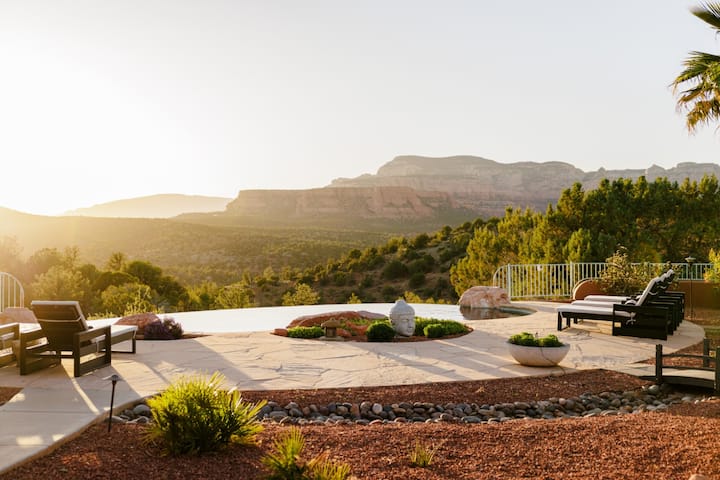 הנכס הזה נמצא על 2.5 דונם עם הנופים הטובים ביותר בכל סדונה! בריכת אינסוף ונופים ב-360 מעלות. נופים מרהיבים של Thunder Mountain, Chimney Rock, Sugarloaf, Bell Rock ו - Courthouse Butte. הבית שלנו, השוכן בקצה כביש פרטי, מציע מקום מפלט שאין שני לו עם התבודדות מוחלטת ונופים מרהיבים.