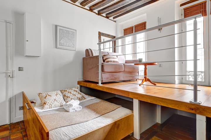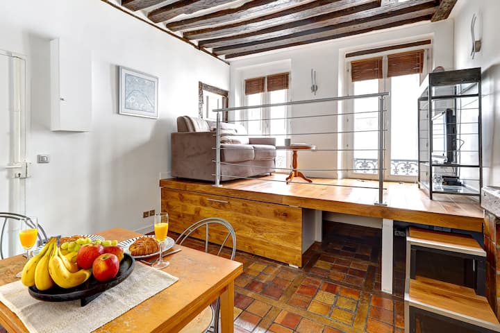 תיהנו משהייה בלב אזור לה מארה בפריז עם דירת הסטודיו המקסימה הזו הממוקמת בקומה השלישית של בניין מגורים מאובטח (ללא מעלית). צ'ק - אין עצמי החל מהשעה 15:00 על ידי איסוף מפתחות בחנות סמוכה. אינטרנט אלחוטי זמין, נהדר גם לעבודה וגם לפנאי. נדרש פיקדון הנזק, בהתאם למדיניות של Airbnb.